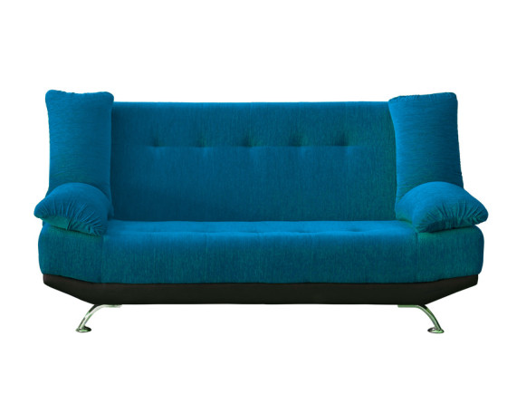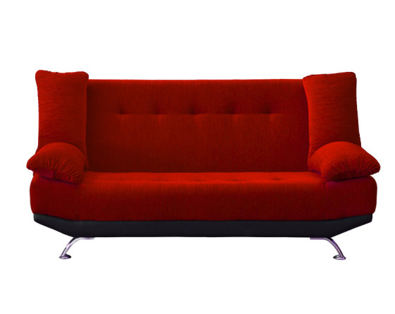 The modern silhouette of the ''Kyle'' sofa features cantilevered legs in a mirror chrome finish and pillow armrests. The button-tufted seat and back cushions highlight the detailed craftsmanship.